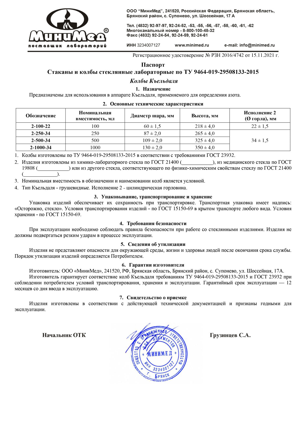 - Стаканы и колбы стеклянные лабораторные. МиниМед. Беларусь. РУ-1
