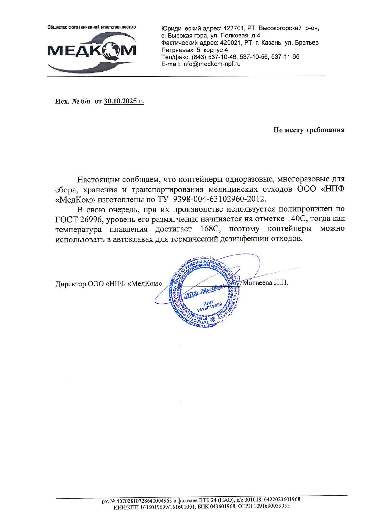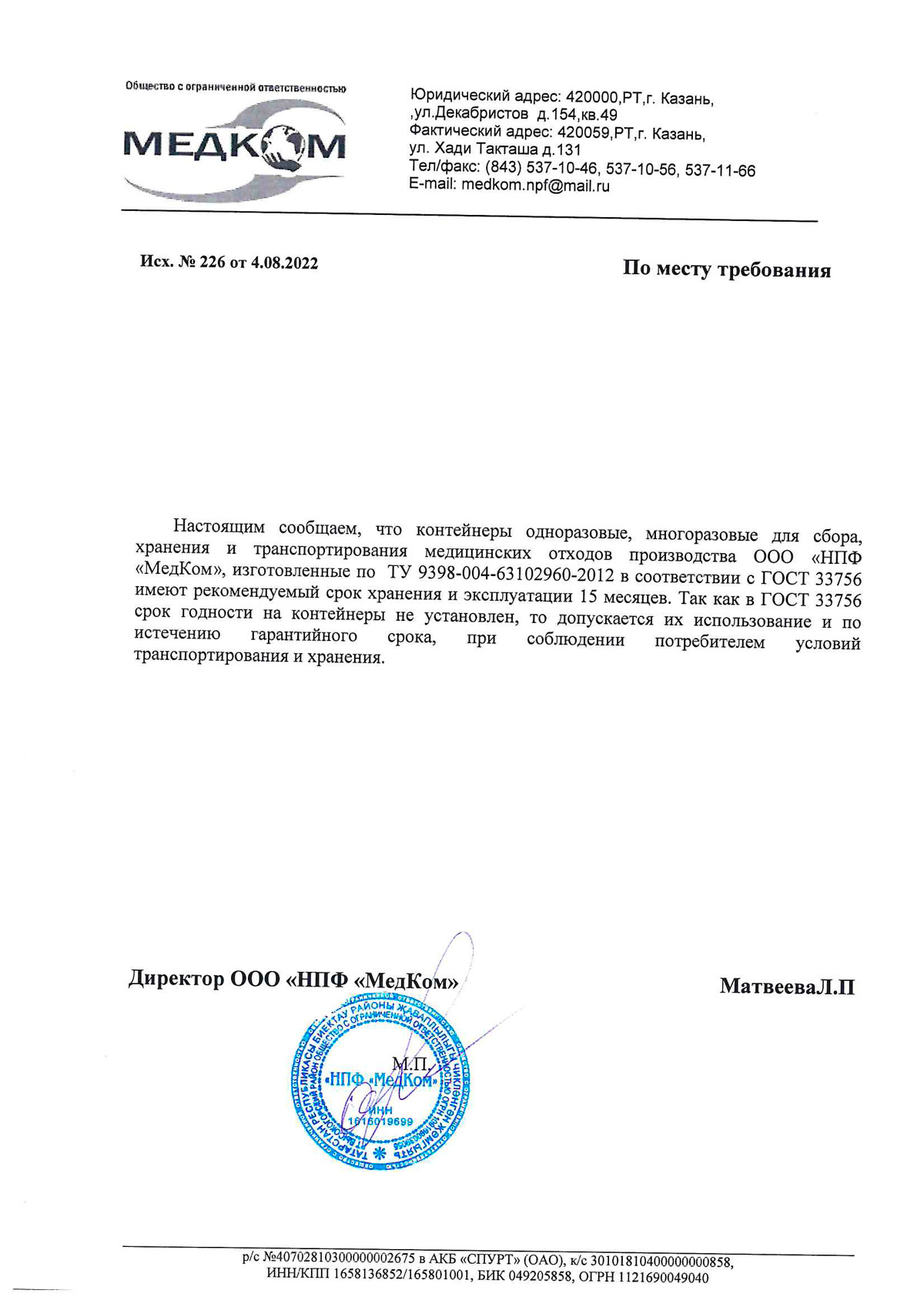 - Контейнеры для сбора, хранения и транспорт. мед. отходов МК-МедКом. Инф. письмо