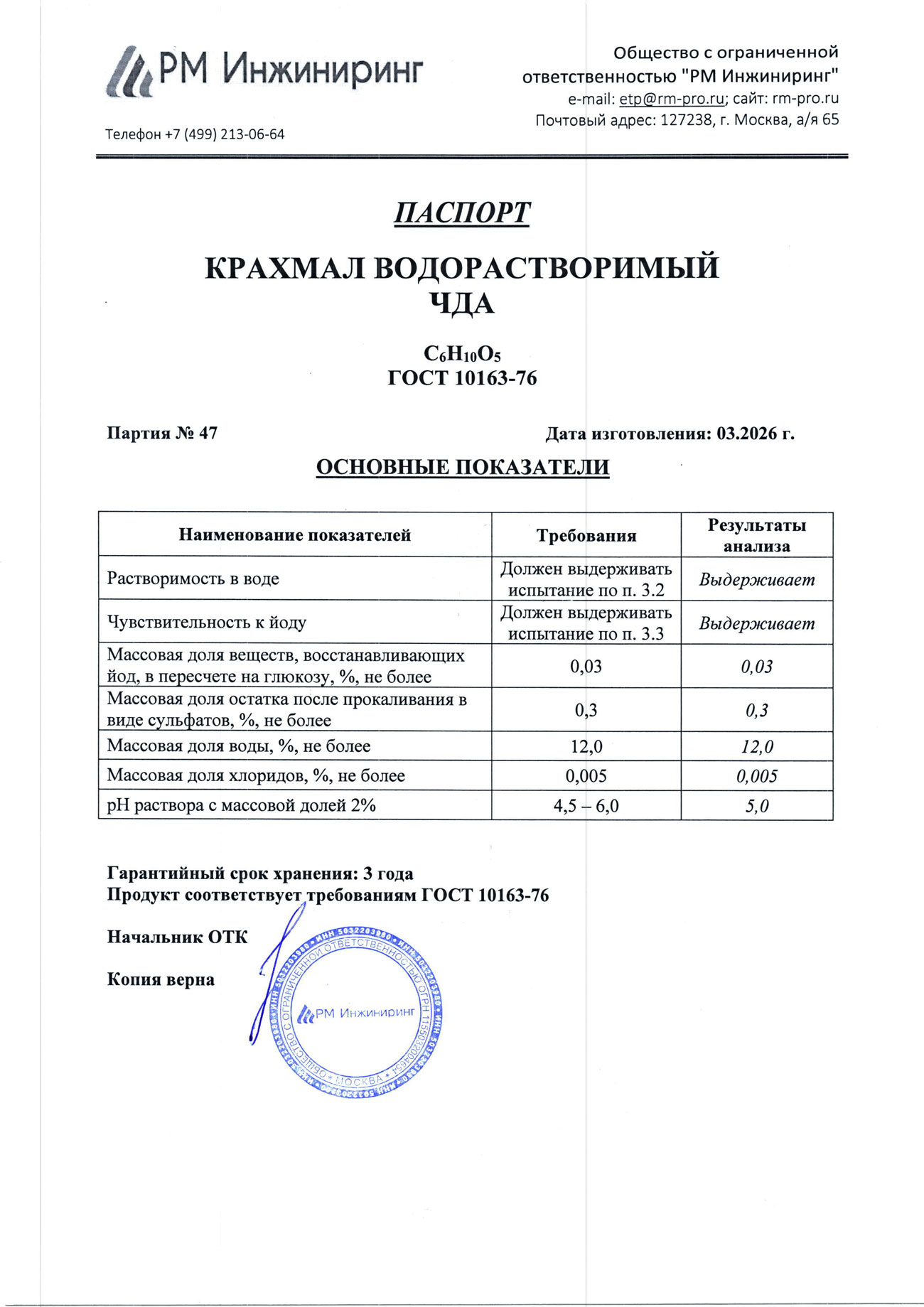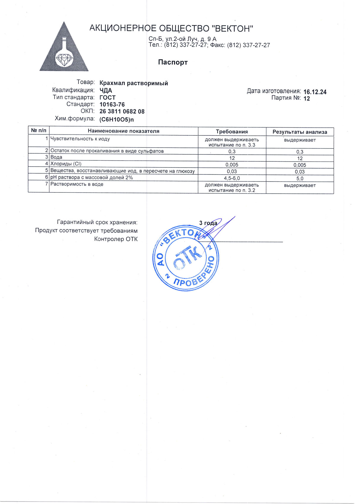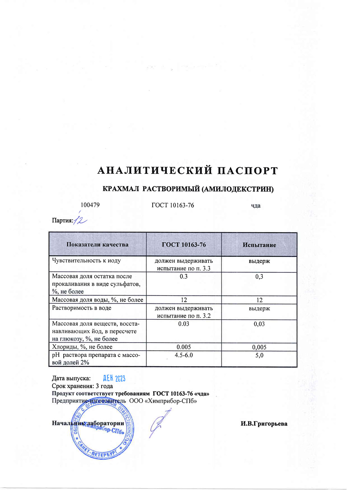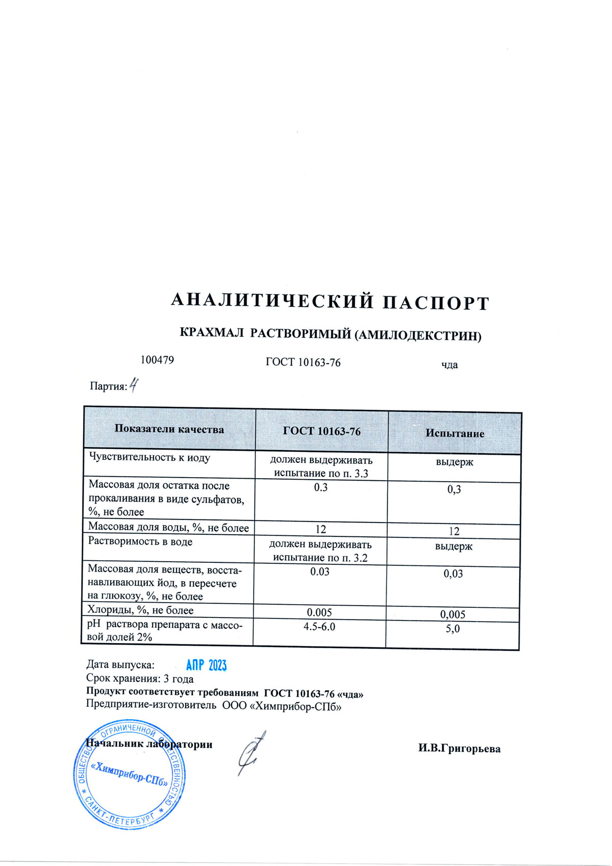 Крахмал индикатор, в/р, чда, 0,5 кг