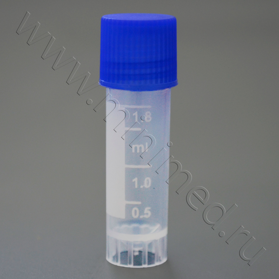 Предназначена для работ при температурах от -196 до +121° С, в т. ч. для хранения образцов в жидком азоте. Крышка с внутренней резьбой подходит для работы с особо опасными биоматериалами. На пробирку нанесена белая маркировка до объема 1,8 мл, цена деления 0,5 мл, имеется окошко для записи. Пробирка с юбкой устойчивости.